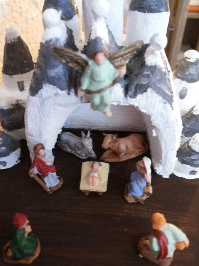 • Descrizione: presepe nel presepe. Nel presepe grande raffigurante i trulli abbiamo voluto creare un piccolo presepe sempre dello stesso tipo posto all’interno di un trullo stesso. Le statuine sono alte poco più di 1 centimetro.