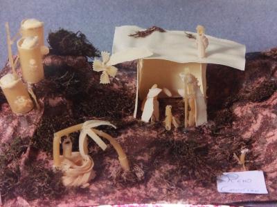 • DESCRIZIONE: " presepe realizzato su tavola 50x50 fatto interamente con pasta"