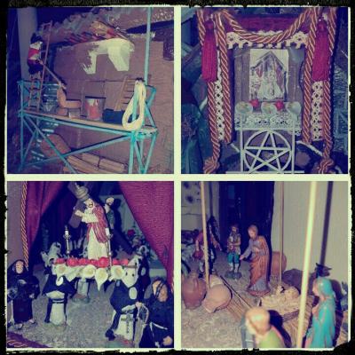 - Tipologia: Opera Artistica, presepe diorama pasquale. Realizzato con polistirolo, cartone, sughero, rame, cannucce, sabbia, muschio, stoffa e merletti, colori a tempera, stecchini e Natalino parlante con effetto: alba, giorno, tramonto, luna, stella, lampi, tuoni e gli effetti sonori. Silicone e colla vinilica per la lavorazione.