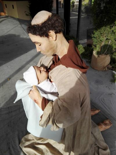 - Descrizione: Presepe allestito a Piazza Garibaldi, Trevi, difronte al Convento di San Martino, rimasto vuoto dopo la partenza dei Frati Francescani. Personaggi a dimensioni naturali. I particolari: visi, mani e piedi, realizzati artigianalmente. Vestiti semplici, francescani. I realizzatori con Maria e Giuseppe hanno inteso rappresentare i poveri, i bisognosi, i diseredati, i terremotati...tutti coloro cioè che in 600 anni di permanenza dei Frati nel Convento di San Martino hanno ricevuto aiuto, conforto, accoglienza. San Francesco, fondatore dell'Ordine dei Frati Francescani nonché del 1 presepe di Greggio, col Bambino in braccio occupa la posizione centrale e svolge la funzione di collegamento tra la Natività e il Convento. Dimensioni: 50 mq ca.