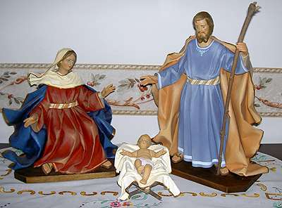 • Dimensione delle statue: Madonna 30 cm; San Giuseppe 40 cm; Gesù bambino 15 cm.