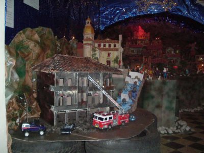Nel presepe è stata in oltre riprodotto con la creazione di una casa bruciata un fatto realmente accaduto che ha scosso la cittadinanza lametina.