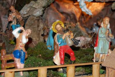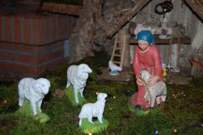 • DESCRIZIONE: Presepe realizzato con l'utilizzo di: sughero, muschio, tavole di legno, dotato di impianto di illuminazione (tra cui il cielo) e fiume con lago con acqua corrente.